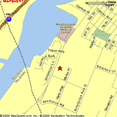 At the end of the ramp take a left onto Meadowlands Parkway.