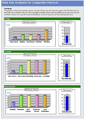 You will receive a detailed report including a rating of your web site against 15 criteria in 3 categories, and we will provide you with advice and feedback.